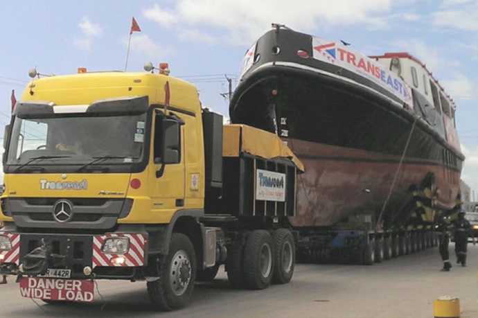 One of Transeast’s most celebrated achievements is the transportation of a 27-meter-long humanitarian hospital ship—the largest single cargo piece ever to transit Kenya. Donated by the Princess Anne Trust to support healthcare in Tanzania, the vessel required extraordinary planning and execution.